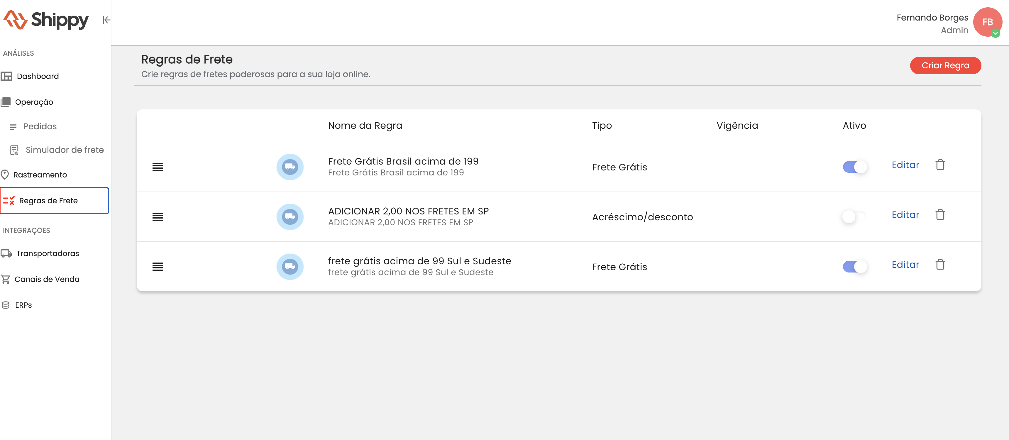Depois clique no botão "Criar Regra". Preencha os campos obrigatórios e informe a data de vigência da regra somente se tiver prazo para encerar. Caso seja uma regra permanente, não precisa informar a data de vigência.