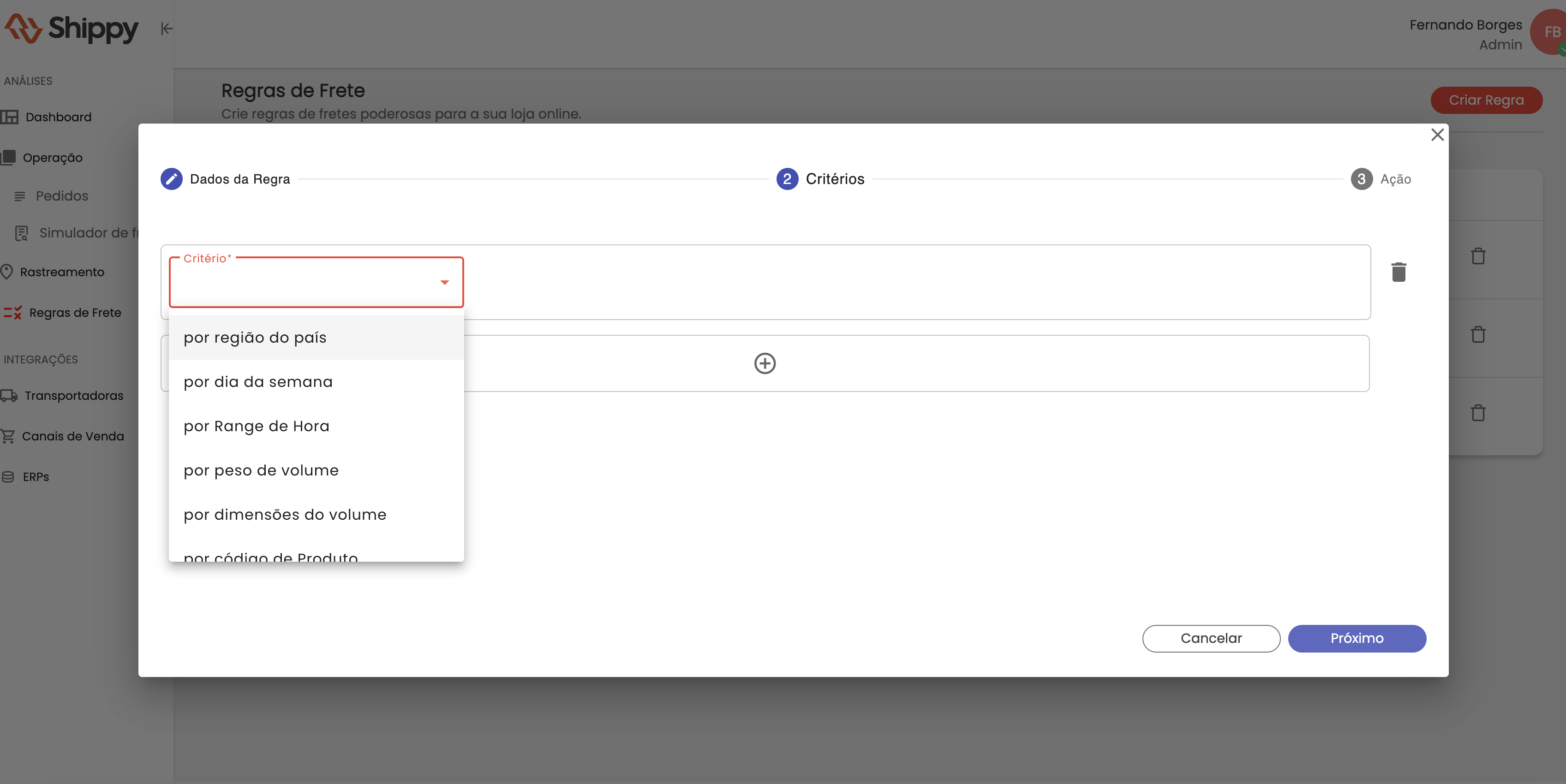 Após preencher os dados da regra, clique em "Próximo" e na próxima tela você pode incluir critérios, se houver.
